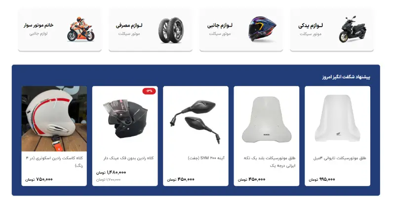 طراحی سایت فروشگاهی لوازم یدکی موتورسیکلت (پرداخت اقساطی)